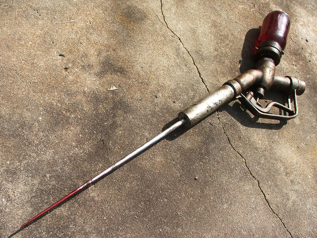 I have to compliment the designers at 2K Games, their research on this project was top-notch. The Syringes themselves are built out of mid 20's-era brass gasoline pumps, the needles/bottles/etc being added by either the Sisters themselves or some other crafty person. I went looking and found this one, casting stamp date 1926. After breaking it apart, I needed to add the barrel/syringe combo, the bottle, and an endcap.